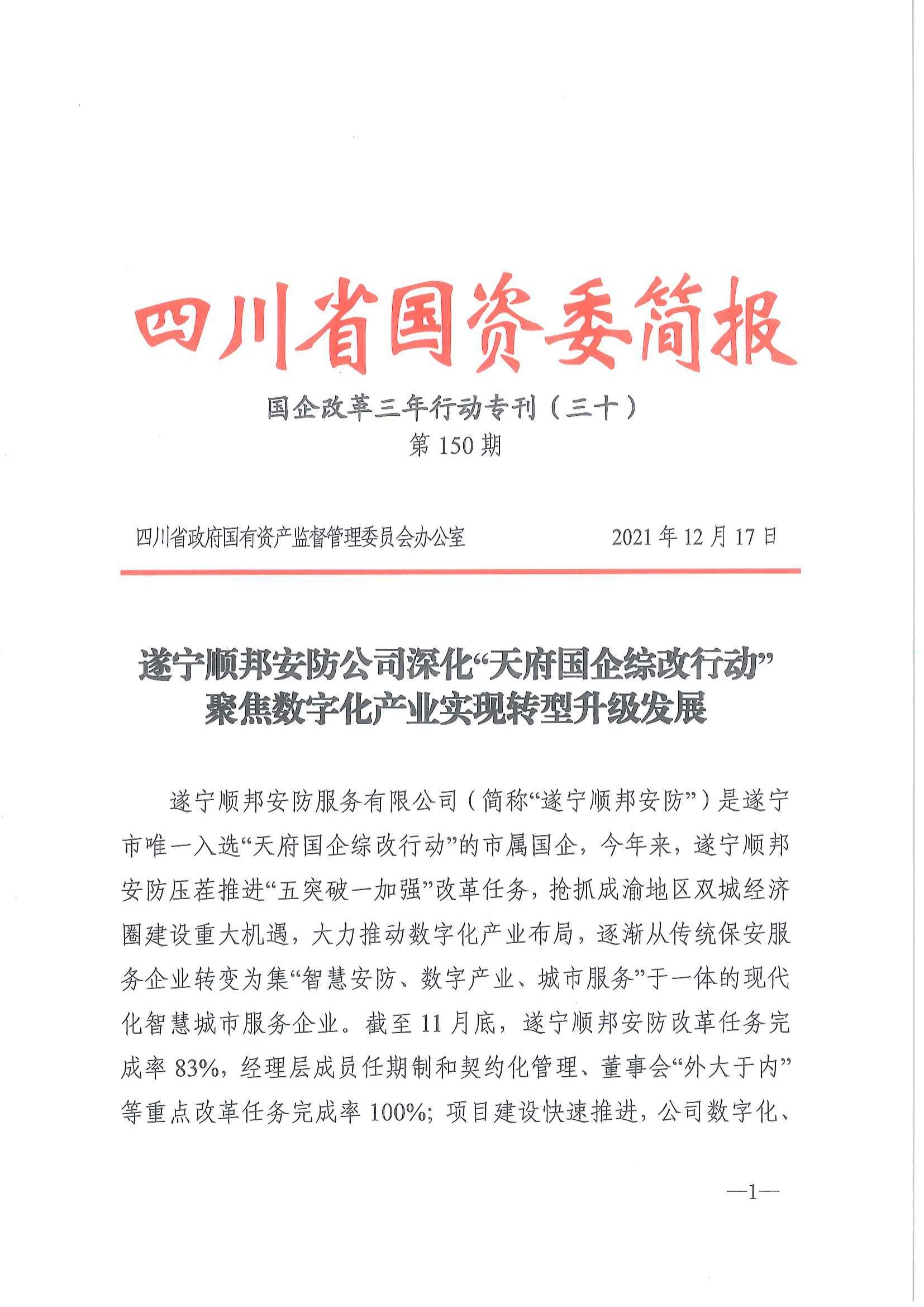 遂寧順邦安防公司深化“天府國(guó)企綜改行動(dòng)”聚焦數(shù)字化產(chǎn)業(yè)實(shí)現(xiàn)轉(zhuǎn)型升級(jí)發(fā)展